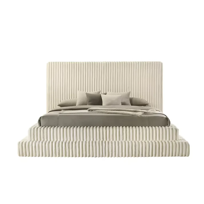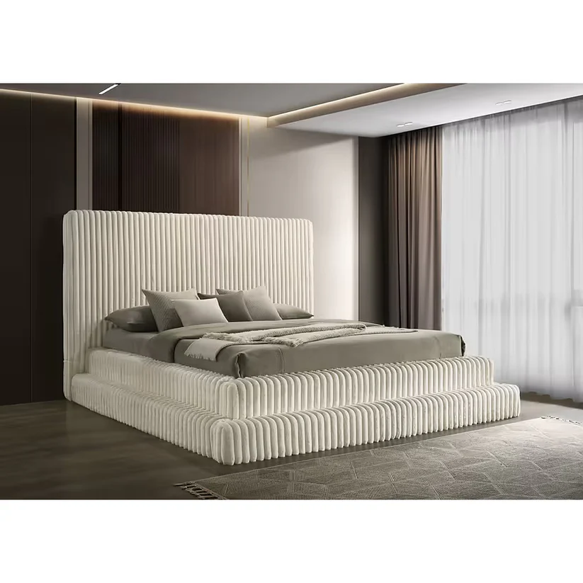 The B9020 Micah bed from Masa Furniture combines comfort with practical design, featuring a luxurious premium corduroy upholstery in sophisticated cream. This versatile frame eliminates the need for a box spring. Perfect for creating a modern, inviting sleep space that adapts to your lifestyle.