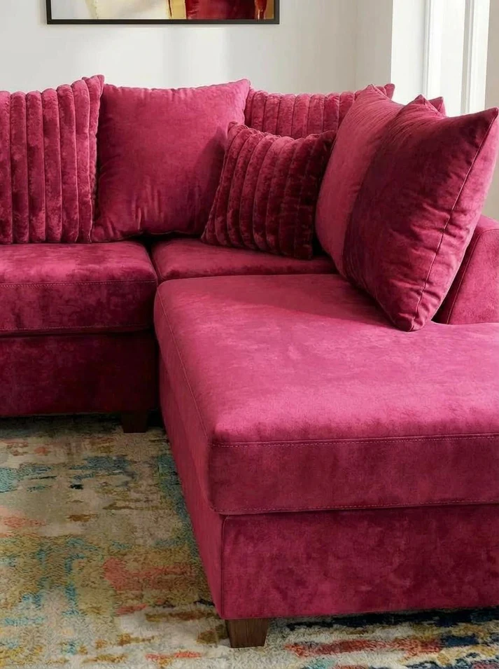 The S325 Kora in striking fuchsia makes a bold statement in any living space. This fabric sectional is designed for those who aren’t afraid to embrace color and personality in their home. The rich fuchsia upholstery commands attention while the thoughtful sectional design provides comfortable seating for the whole family. Perfect for creating a focal point that reflects your confident style and transforms your room into something truly memorable.