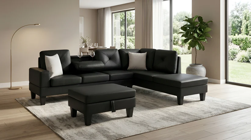 Sleek Black PU Upholstery: Wrapped in premium black faux leather (PU), this collection offers a sophisticated, semi-gloss finish that is as durable as it is stylish. The material is designed for easy maintenance, making it perfect for high-traffic households.