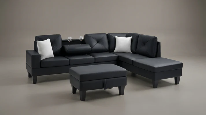 Signature Drop-Down Console: The center backrest seamlessly transitions into a functional drop-down table equipped with dual integrated cup holders, providing a stable surface for beverages and devices during movie nights or lounge sessions.