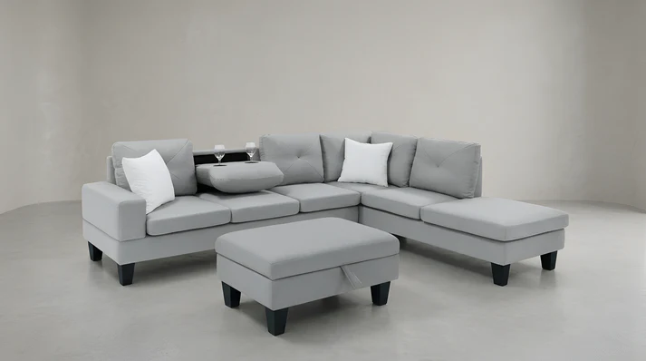 • Textural Contrast: Each sectional includes plush accent fabric pillows, adding a layer of comfort and a crisp visual pop against the calming grey tones.